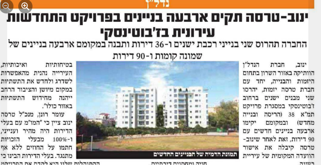 דיירי בניני הרכבת הישנים ברחוב ז'בוטינסקי ברעננה, סבלו שנים רבות מהזנחה והתדרדרות של סביבת המגורים. הבניינים שנבנו בשנות ה50 כבר לא התאימו למגורים וניצול השטח ביחס לביקוש באזור היה נמוך. את האתגר לקחה על עצמה ינוב בניה ופיתוח, שהצליחה בתהליך מורכב להניע פרויקט מורכב שכלל הסכמות עם דיירי 2 בניני רכבת ישנים בהם התגוררו 36 […]